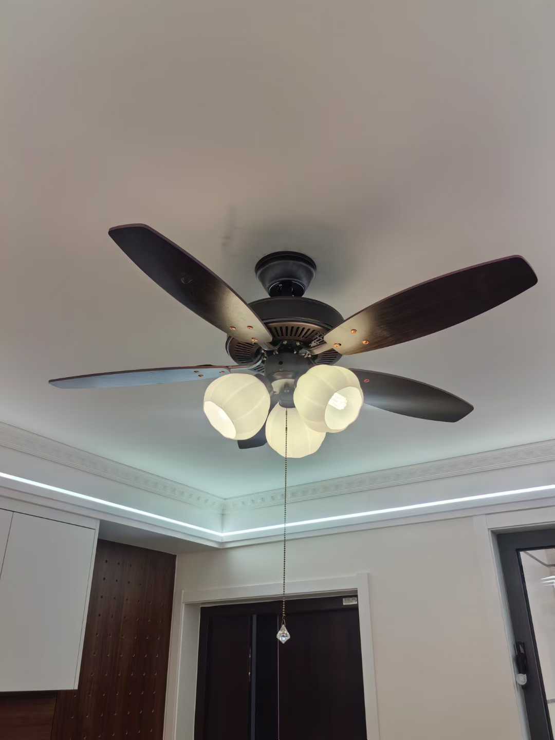 材质:罩子玻璃-扇叶木艺-电机纯铜