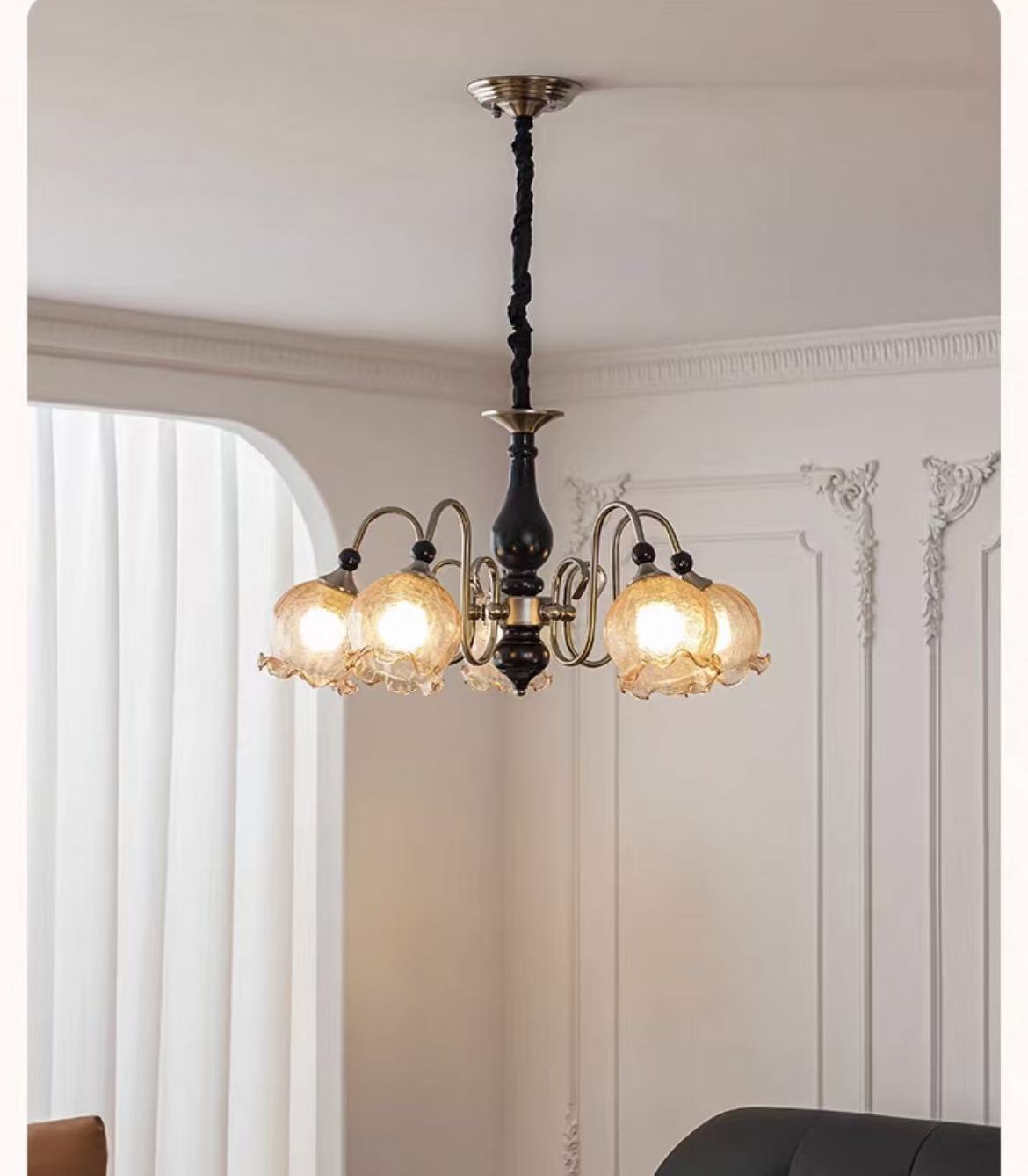 主体材质:铁艺五金灯体+实木中柱