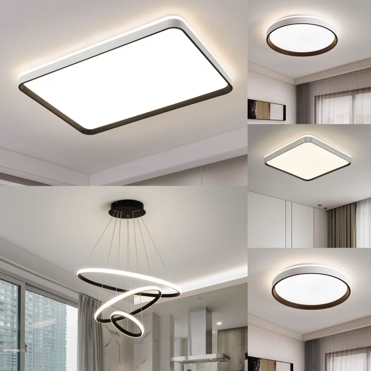餐厅:8008-三环黑色-600mm-三色LED变光光源